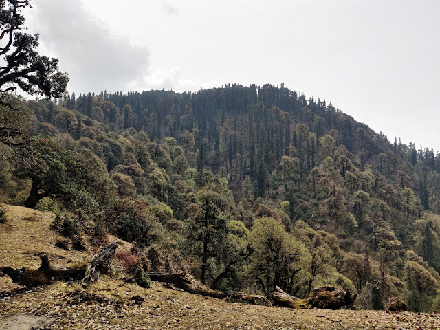I woke up to find a sunny day. I went straight to the Deoriatal Lake. The lake is situated at an altitude of approx. 8000 ft. It is located in lush green surroundings which is part of Kedarnath Musk Deer Sanctuary. The view of Deoriatal Lake is simply majestic with the backdrop of several snow-covered mountains including the mighty Chaukhamba. The reflection of mountains and the surroundings in the Deortal Lake is a sight to behold. I circled the lake and truly enjoyed my walk. I started my walk by climbing the viewpoint structure to had a panoramic view of mountains followed by my daily morning meditation session. There’s something really magical about meditating in the middle of nature. I saw several different kinds of birds during my walk including the national bird of Uttarakhand i.e. Monal. There’s a post office that works like an ATM for locals. I sat at the lake for some time before heading back to my camp. After having my breakfast, I decided to trek to Chopta on the same day. I decided to hire the local guide Mr Negi (His number is 6397623655) since the way to Chopta can be confusing. My plan was to follow the groups who were heading to Chopta but they left while I was exploring the lake. I left much later at around 9.30 am. I negotiated the price at 1000/- INR but till 4 Km before Chopta. The whole trek is 15-16 Km long. I needed some kind of adventure as going with a guide till Chopta was kinda boring for me haha and also to accommodate the price into my budget. On the way, we passed through all the people who left before us. Mr Negi entertained me with the local legends and we talk about the lifestyle of the Sari Village people. Deoriatal Lake is associated with the Mahabharata tale by locals. During the winter season, sometimes it becomes really difficult to do this trek as the whole path is filled with excessive snow. We came across mixed forests of oaks, pines and rhododendrons. After passing the Rohini Bugyal(Meadow), we reached the last board that says “Chopta” and there my guide leaves me with detailed instructions. I came across a small bridge with a stream of water flowing under it followed by a rocky path as told by my guide. I did the rest of the trek alone without any difficulties. Now that I have completed the trek, I advise you to take a guide or follow a group if you are doing it solo because the path gets confusing in the middle but it is not so difficult to do this trek with a few patches of a steep climb. It took me around 7 hrs to do it with a couple of stopovers. After reaching Chopta, I checked into my room and planned to leave really early in the morning for the last leg of the trek. I paid 900/- INR for two nights after the usual negotiation.