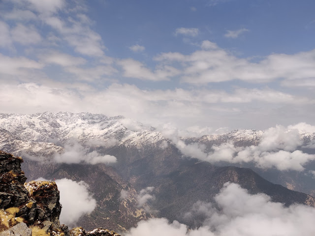I woke up at 4.30 am to find out it was raining heavily with snowballs. I went back to sleep and woke up again after a couple of hours while it continues raining. Finally, the weather got clear and I started the trek at 8.30 am. After walking for 30 minutes, it started raining again and I took shelter at a tea & snacks shack. It was freezing cold. While waiting and sipping tea, I suddenly saw snowflakes and soon it starts to snow heavily. It was my first time experiencing snowfall in India. It reminds me of my first snowfall experience in the USA. I continued my ascend in the snowfall which was really fun and then I saw one of the best views of my life. A truly magical moment. The sun was out while it continues to snow and I saw a clear rainbow forming with the backdrop of mountains. What a spectacular view it was! After some time, it stopped snowing. After an hour and a half or so, I reached Tungnath temple. It was closed during my visit and will be opening soon in the month of April as per the locals. It is one of the highest Shiva temples in the world. I continued my journey to Chandrashila peak. It was a bit tricky to walk on the snow but I was enjoying the process of learning and improving along the way. I met trekkers from different parts of India on the way. Finally, I reached the summit of Chandrashila peak after more than 3 hrs in total. Chandrashila peak is located at an altitude of around 13000 ft. The peak provides stunning views of the mighty Himalayas. I spent a couple of hours at the peak absorbing the stunning views around me. Sun was out and the weather improved significantly. While ascending, almost all the snow was melted. I was lucky to do the trek on that particular day as it was the perfect day. A special shoutout to the dogs there. Sounds weird haha but they are one of the friendliest dogs I have met. After reaching Chopta, I went to have a cup of tea at Cafe Moksha. An awesome bunch of people runs this place. We had some really interesting conversations/anecdotes about trekking experiences. The next day, I left Chopta for Joshimath. More about that in my next post. For those looking to return back from Chopta to Ukhimath. The sharing taxis/buses are available in tourist season and April is not one of them. So you need to hitchhike or hire a special taxi to reach Ukhimath. Another extreme option is to trek back to Sari Village and then take public transport for Ukhimath. It was my first Himalayan trek but definitely not the last. Stay Tuned!